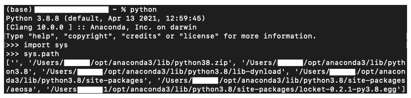 • カレントディレクトリ→/Users/../opt/anaconda3/lib/python38.zip → /Users/…/opt〜の順