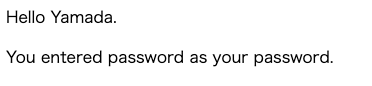 # <p>Hello Yamada.</p><p>You entered password as your password.</p>