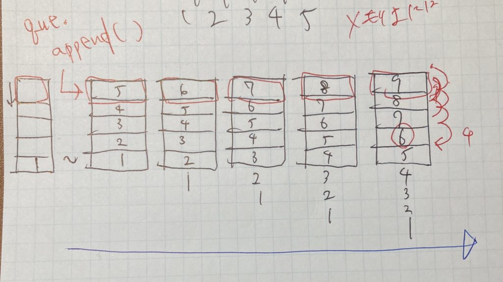 # いったんqueはリストみたいに考えておく(5行しか格納しない)