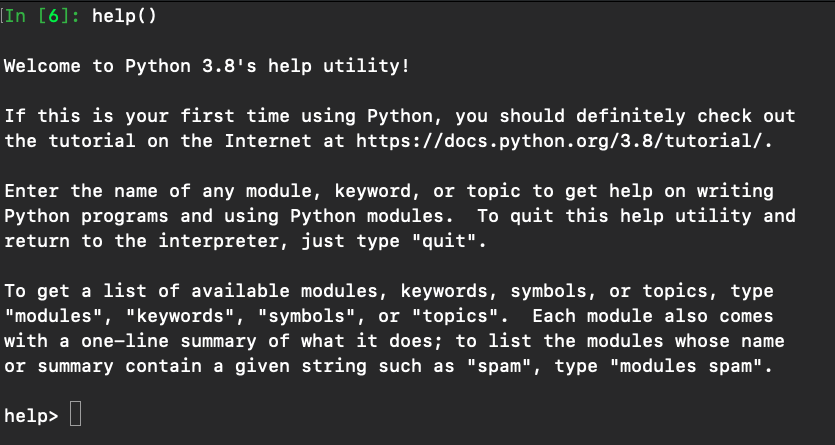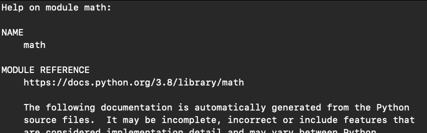 ヘルプ関数 help()、dir()は未 投稿者: WP_MIWA_KY | 2022-07-02 0件のコメント 目次 help(引数) 組み込み関数以外は、事前にimportが必要 help() (引数なし) ヘルプユーティリティが起動する 調べたいことを入力すると、 mathのヘルプが表示される manコマンド 基本的な画面操作は以下のとおり詳しくは、SUMMARY OF LESS COMMAND を参照