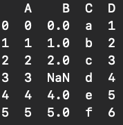 例)列Dは実は文字列、列BにはNaNあり