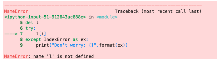 # name 'l' is not defined- IndexErrorでもNameErrorでもないエラーが発生したときは