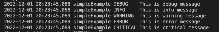 WARNINGレベル以上のログが表示される debugやcriticalレベルを表示させたい場合は、logging.basicConfig(level=logging.〜〜)の設定が必要