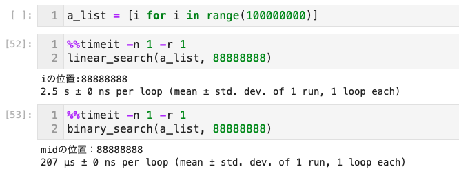 - リスト内の要素を半分に分割して探索する