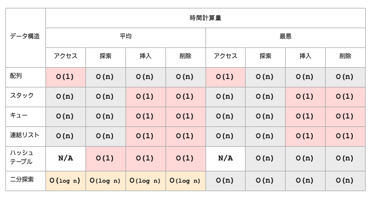- 配列の要素にインデックスでアクセスする場合、上記のメモリーアドレス計算(多次元配列は少し違う)によって、インデックスがいくつでも定数時間