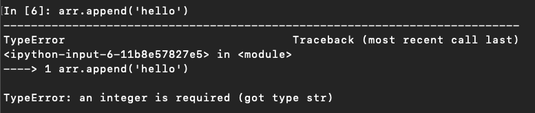 - もちろん、listと違い、arrayに最初に指定したのと違うデータ型を格納するとエラーが発生する