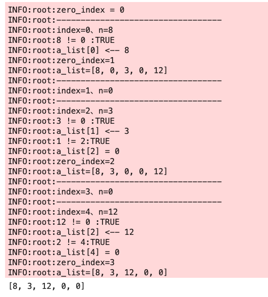 a_list[index] = 0 # (ゼロでない数字の)元のインデックスを「ゼロ」を変更(移動)