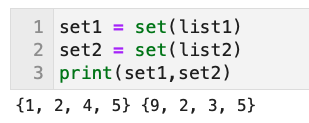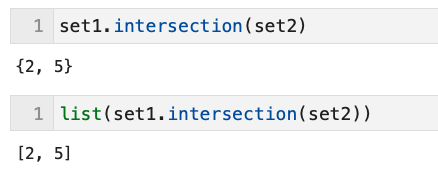 setに変換しさえすれば、intersectionメソッドで2つのデータから重複要素を取り出せる- リストに戻す場合は以下でよい