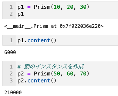- p1.height という式は、関数内 self.height と同じ。self がインスタンス自身を表している