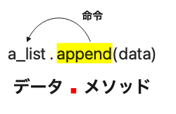 a_list.append(data)など - データに紐付いて、処理や操作を行う関数のこと