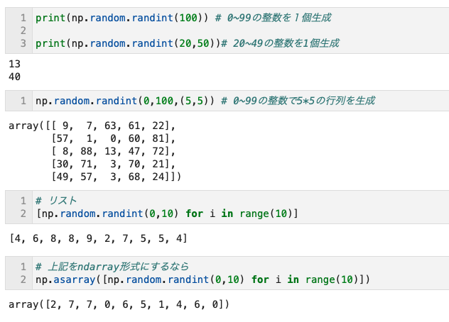 • 一次元の複数個のndarrayは工夫が必要(?)