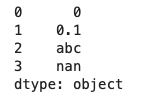 s_object = pd.Series([0, 0.1, 'abc', np.nan])