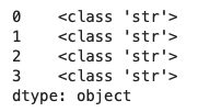 # pandasでは文字列を含むSeriesやDataFrameの列は「object型」と表示される