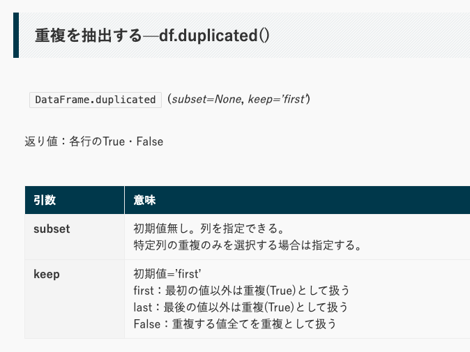 - duplicatedはデフォルトでは、最初の値「以外」を重複(True)として扱う