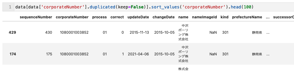 - 重複した行をすべてを表示させたい場合は、keep=False(カンマ不要)をセットする