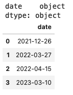 sample = {'date':['2021-12-26', '2022-03-27', '2022-04-15', '2023-03-10',]}