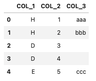 df = pd.DataFrame({'COL_1': ['H','H','D','D','E'],