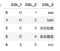 'COL_3': ['aaa', 'bbb', '吉田松陰', '坂本龍馬', 'ccc']})